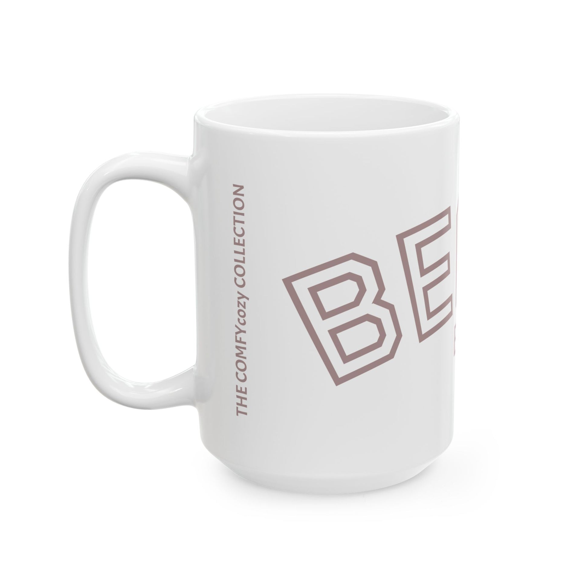 Our mugs are BPA and lead-free, microwave & dishwasher-safe, and made of white, durable ceramic in 11-ounce and 15-ounce sizes.